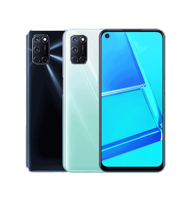 Oppo A52 features a 6.5" FHD+ display, 128GB storage, 4GB RAM, and a quad-camera system. A solid performer with premium build and long battery life.